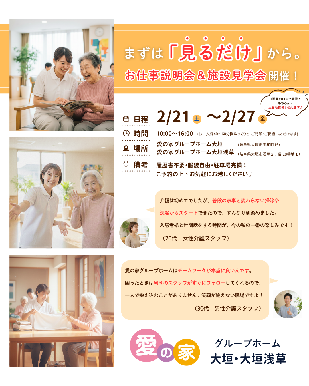 【お仕事説明&施設見学会】愛の家グループホーム大垣